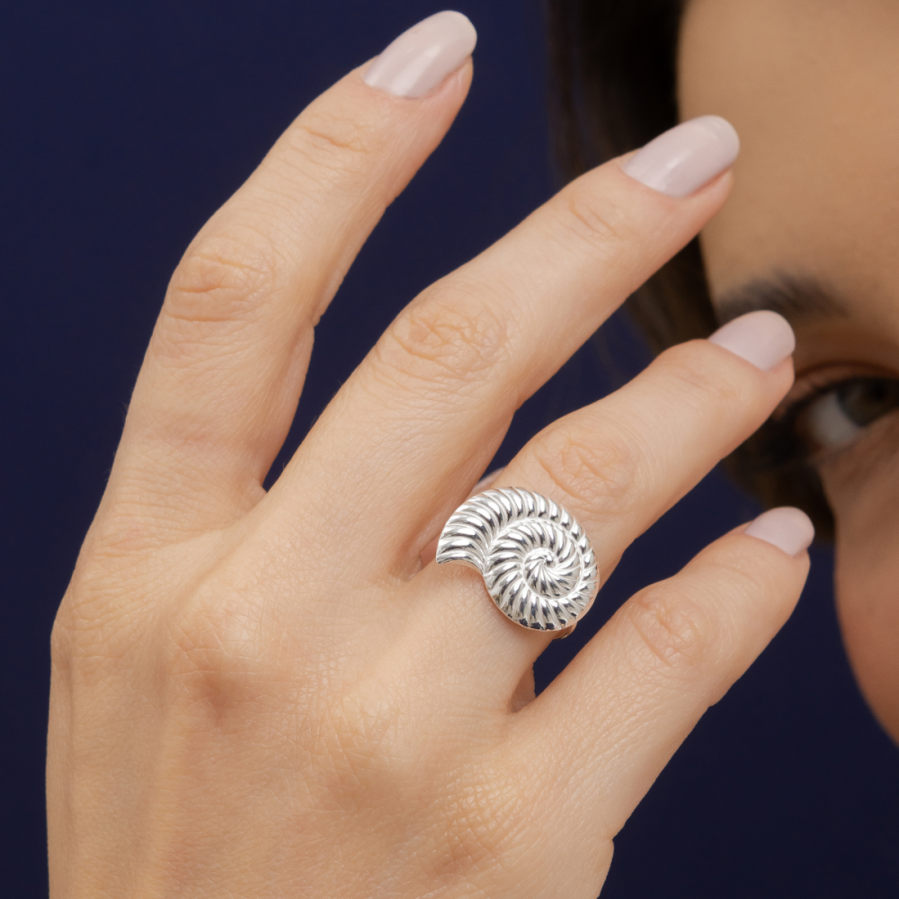 Etiquetas: Coleção Oceania, Anel Regulável Prata 925, Anel Prata 925 Atacado com detalhe em Concha Caracol, Anel Regulável Concha, Anel Mar