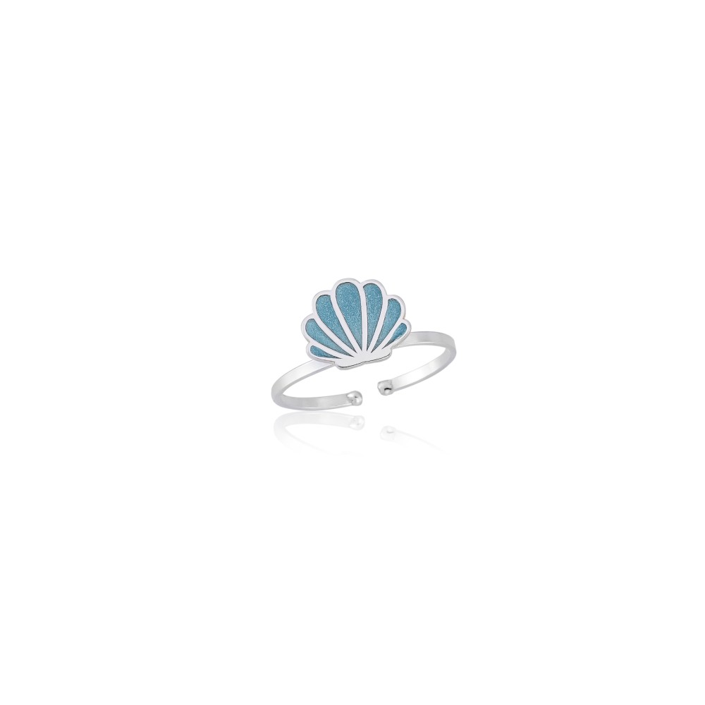 Anel Regulável em Prata 925 Concha do Mar Azul