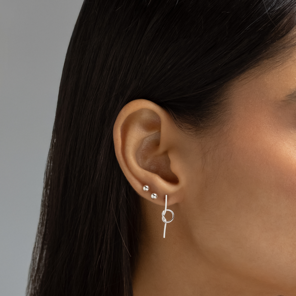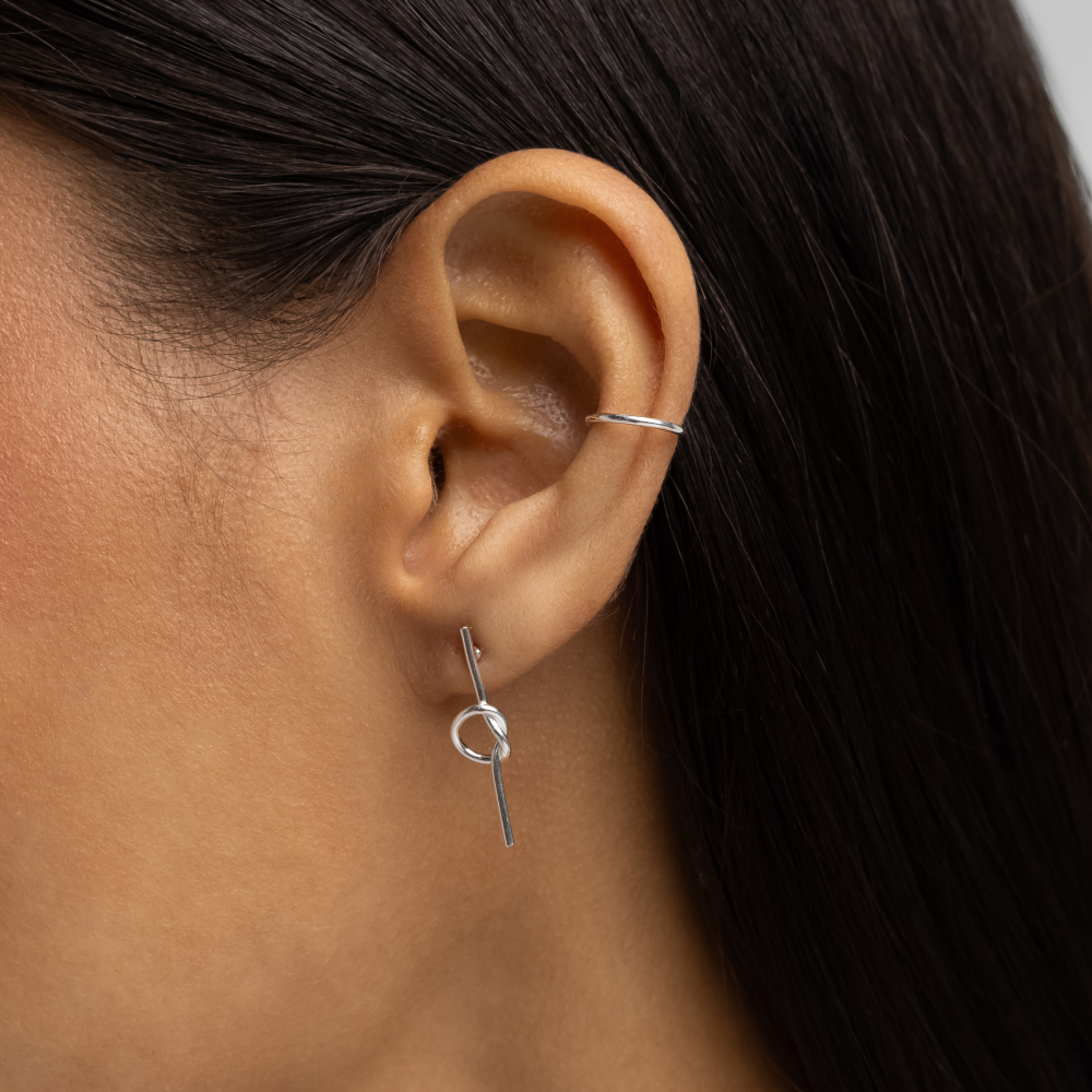 Brinco em Prata 925 Palito com Detalhe de Nó