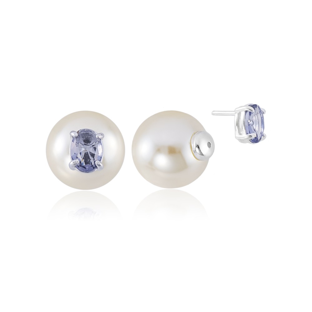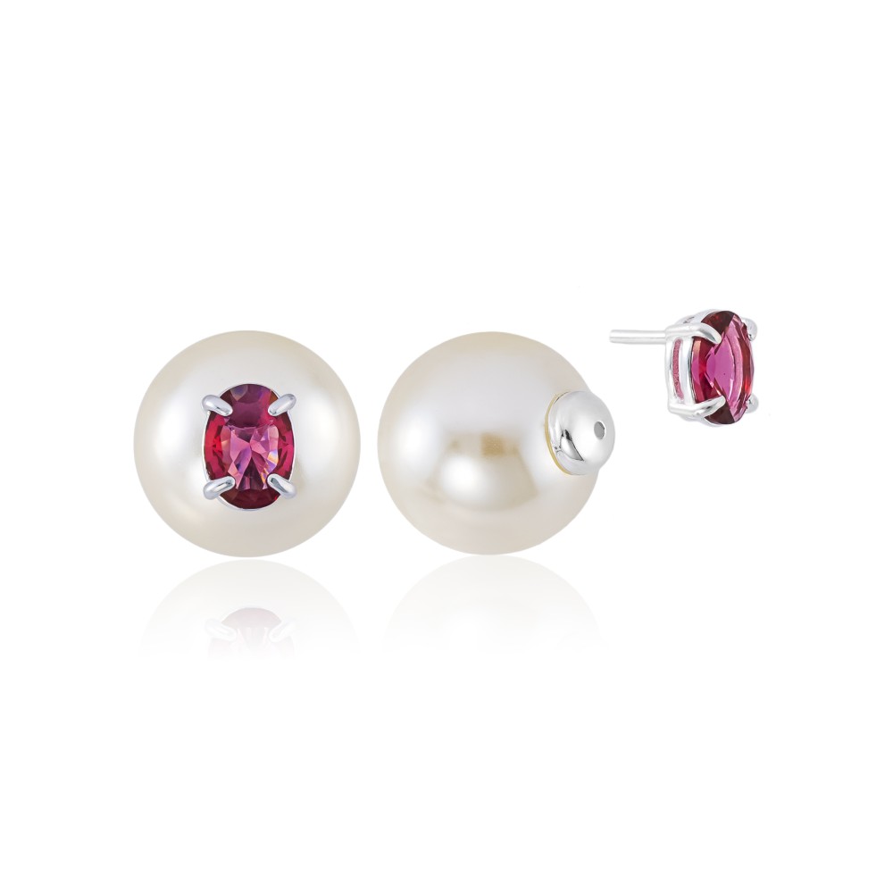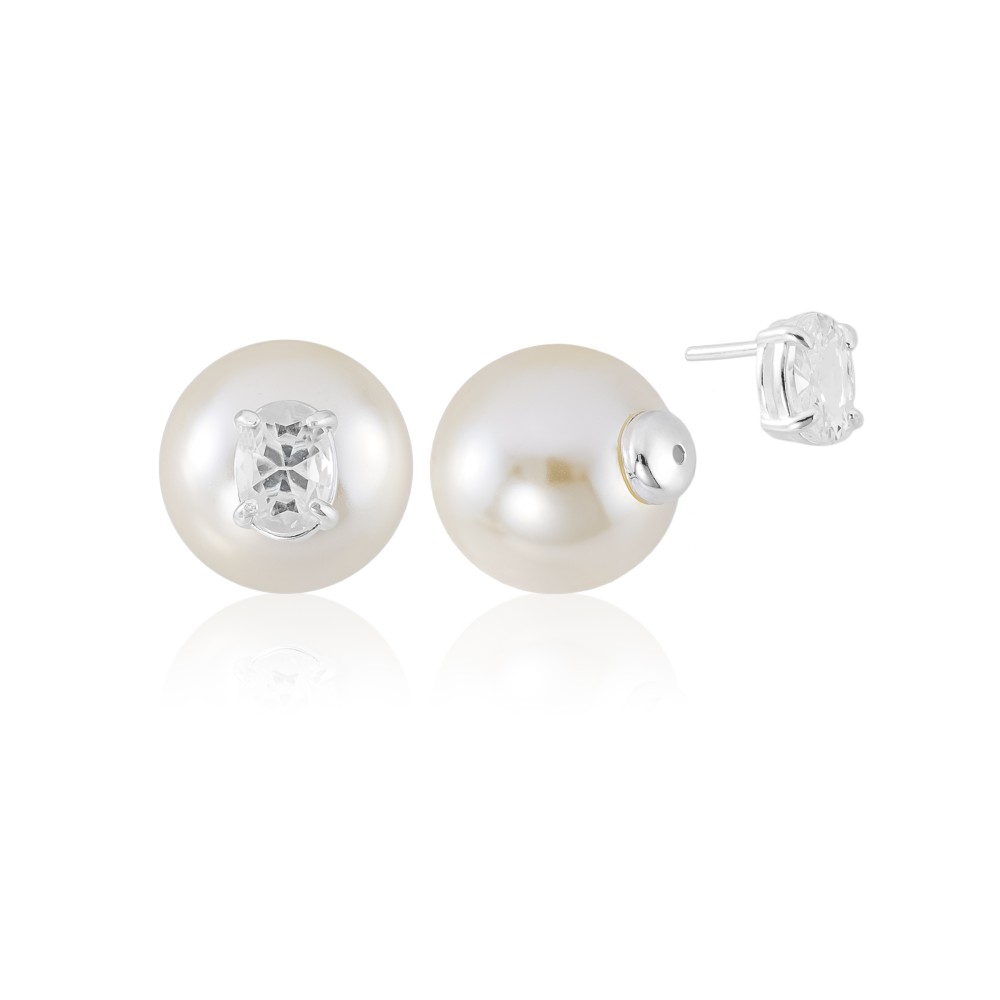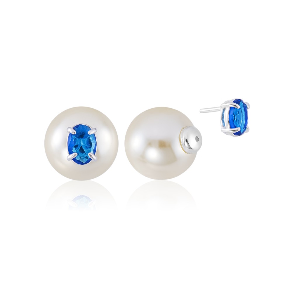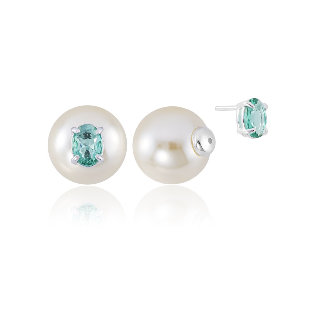 Brinco em Prata 925 Duo Pedra Oval