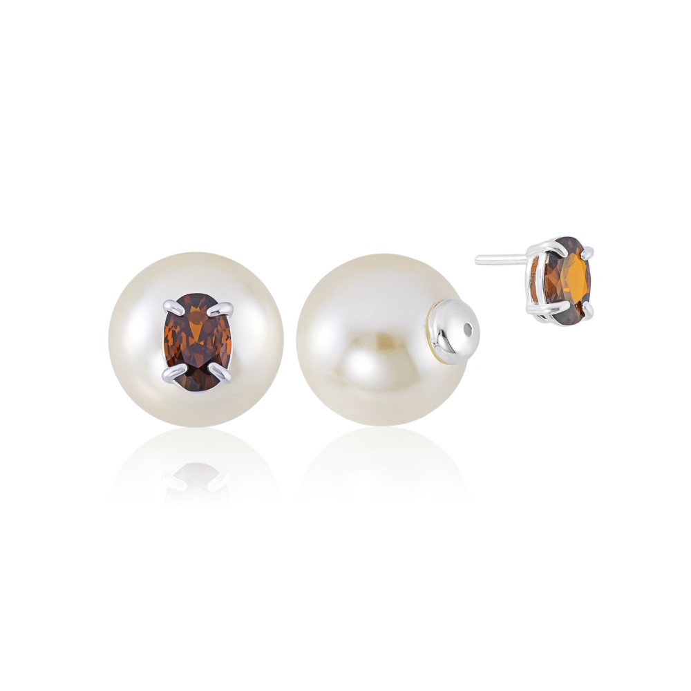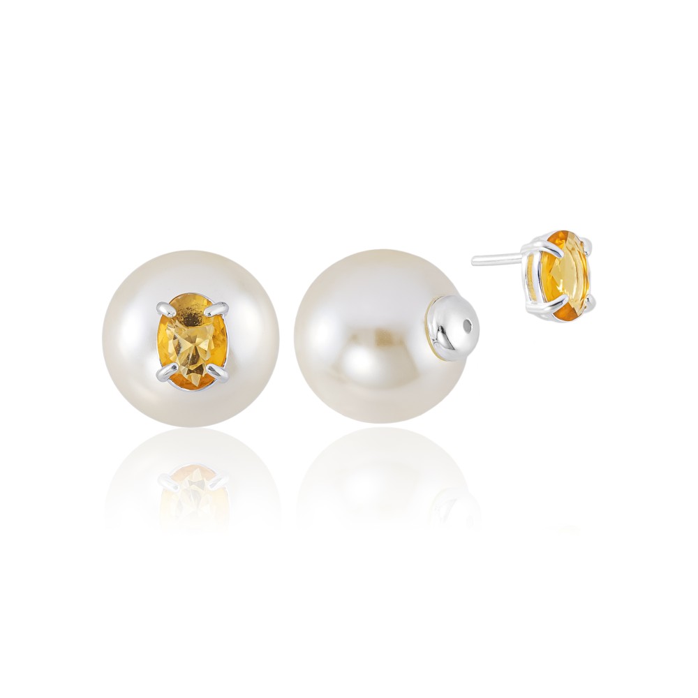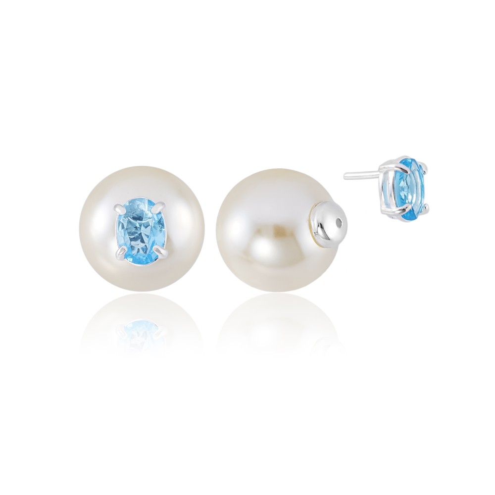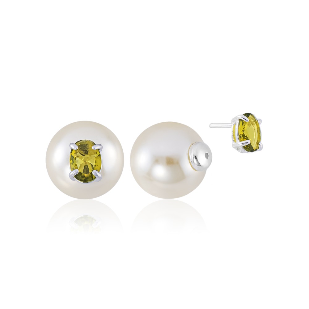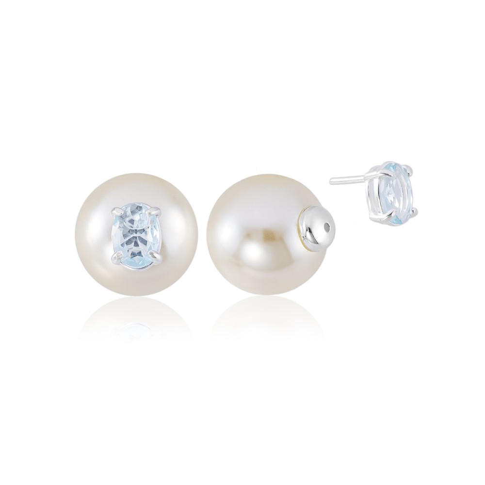 Brinco em Prata 925 Duo Pedra Oval