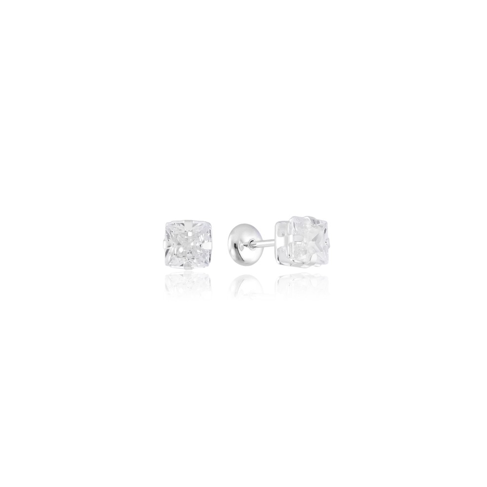 Brinco Baby Press em Prata 925 Pedra Quadrada