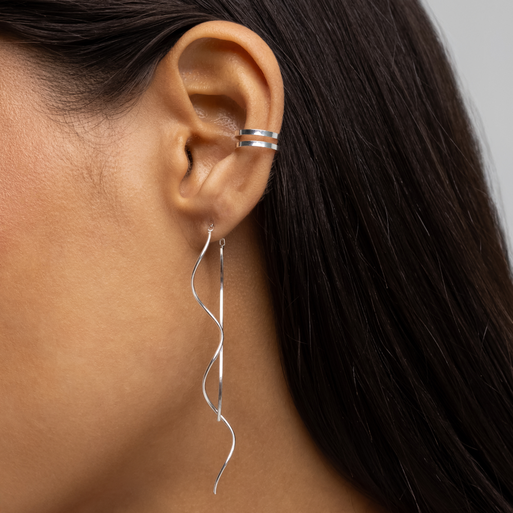 Brinco em Prata 925 Encaixe Fio Duplo Ondulado