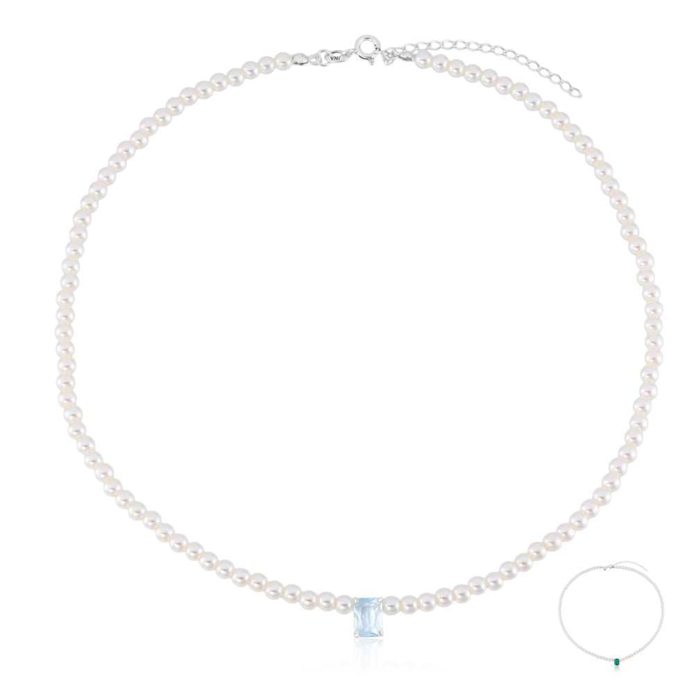 Gargantilha em Prata 925 Pérolas e Pedra Retangular