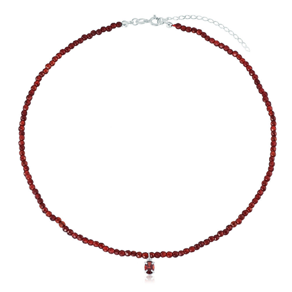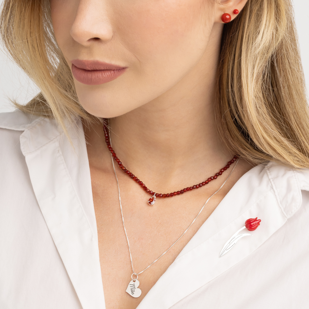 Gargantilha em Prata 925 Ágata de Fogo e Ponto de Luz Granada