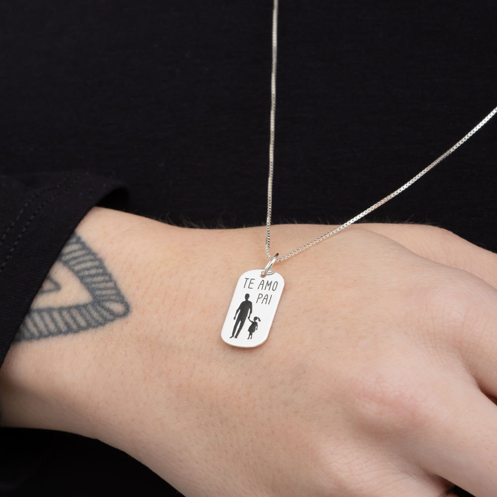 Pingente em Prata 925 Placa Retangular Te Amo Pai Filha