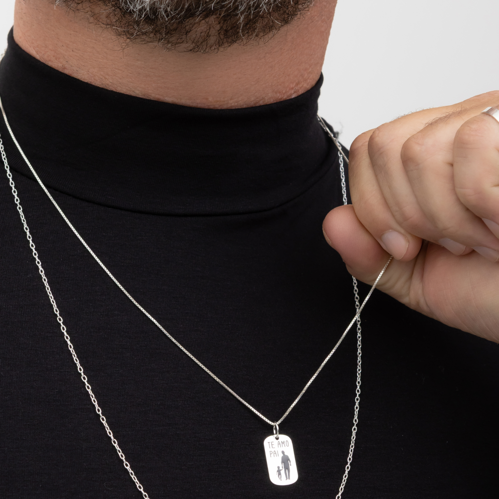 Pingente em Prata 925 Placa Retangular Te Amo Pai Filho