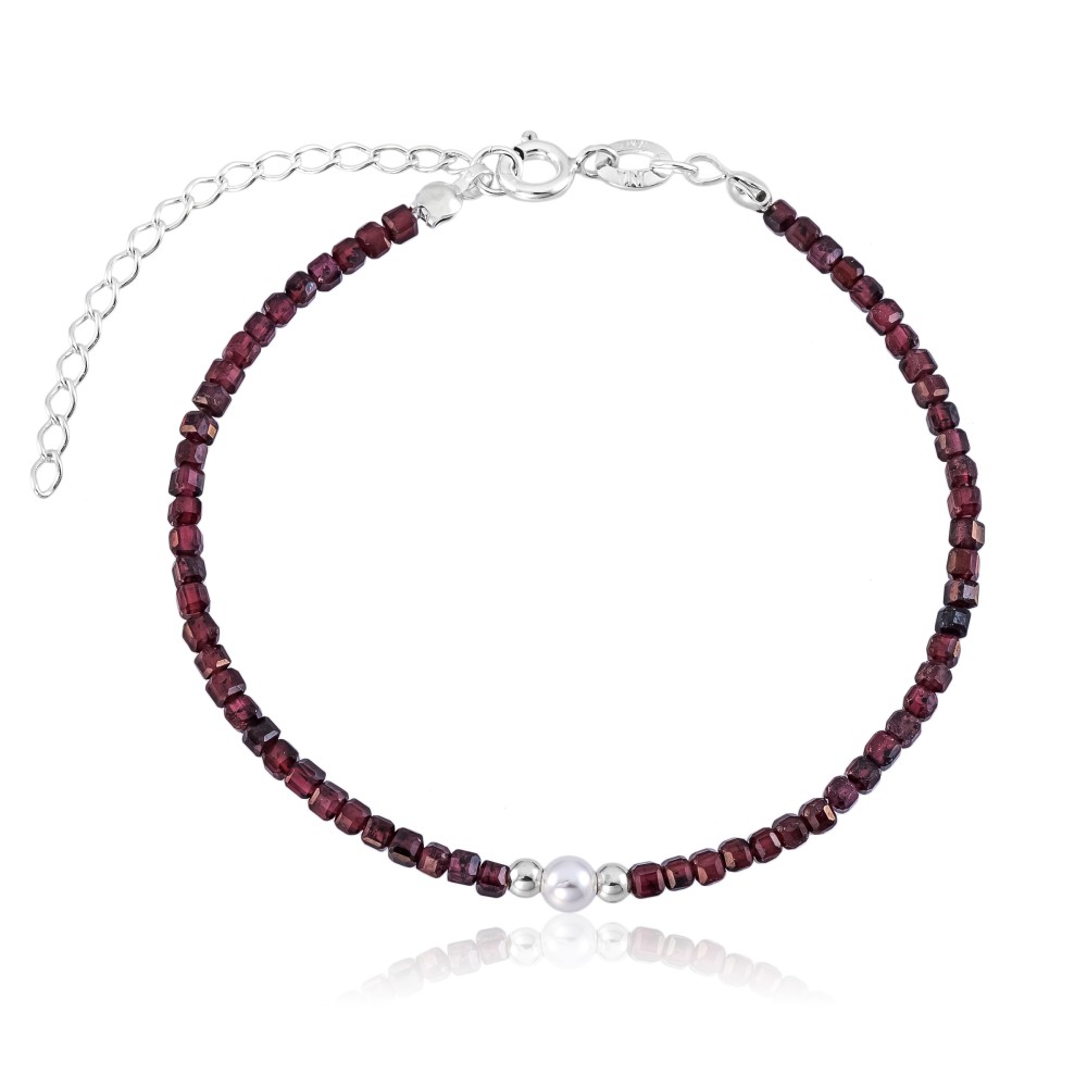 Pulseira em Prata 925 Granada Pérola